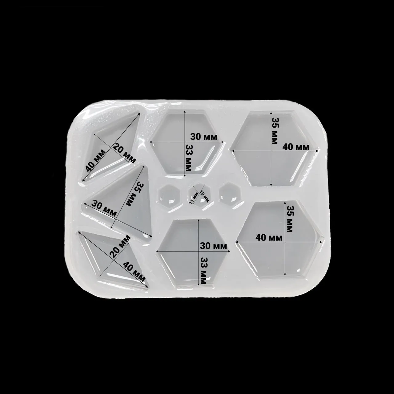 Молд силиконовый "Набор шестиугольников и треугольников" (молд с линзой)